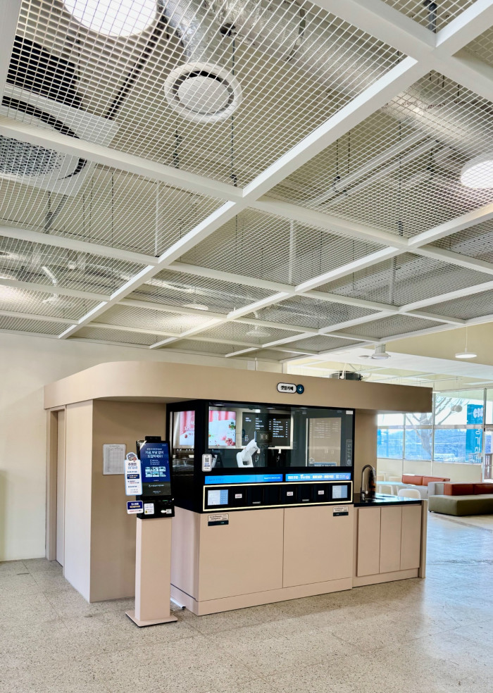 경기창작캠퍼스 선감생활동 1층에 위치한 ‘갯벌카페’는 키오스크 및 모바일 기기로 주문할 수 있으며, 주문부터 결제, 음료 제조, 픽업까지 전 과정이 자동화된 무인 로봇카페로 대기 시간을 줄이고 이용 편의성을 높인 것이 특징이다. 원격 관리와 정기 점검을 통해 위생적이고 안정적인 운영 환경을 유지하며, 방문객에게 언제나 균일한 품질의 음료를 제공한다.