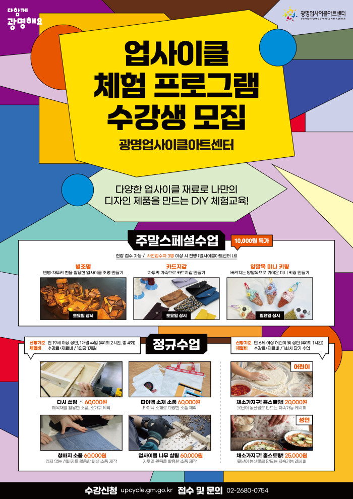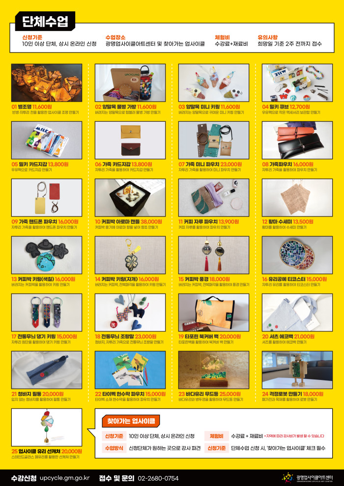 자세한 사항은 누리집을 참고하거나 광명업사이클아트센터(02-2680-0754)로 문의하면 안내받을 수 있다.